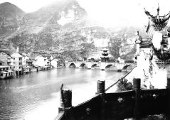 我一直设法向窗外张望,但是外面看不到任何东西。唯一能看到的是云。云太低了,甚至把树顶都遮住了。这就是我初入贵州的印象,它一定是中国最被太阳遗弃的省份吧。而我在这个见不到太阳的省份的第一站是镇远,它横跨在无阳河(无阳河现名为舞阳河。——译者注)——也就是没有太阳的河上。多么般配啊,我这样想着,火车徐徐停靠在站台上。管它有没有太阳呢,我急匆匆地下了车,免得再和那个一心要报仇的弃妇打交道。刚一落地,没有常见的出租车司机一拥而上的情景,迎面而来的却是一群大声吆喝着的农民,其中一个把我领到了他的马车旁。马车甚至还装备了顶子。后来我发现,火车站离市中心两公里,马车师傅们垄断了到市区的交通。车费1元钱,也就是20美分。我以这样一个美妙的开始认识了镇远,它很快就成了我最喜欢的城市之一。