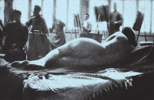 说完,刘海粟缓缓拉开了帘幕,一位全身赤裸的年轻少女出现在学生们的面前。