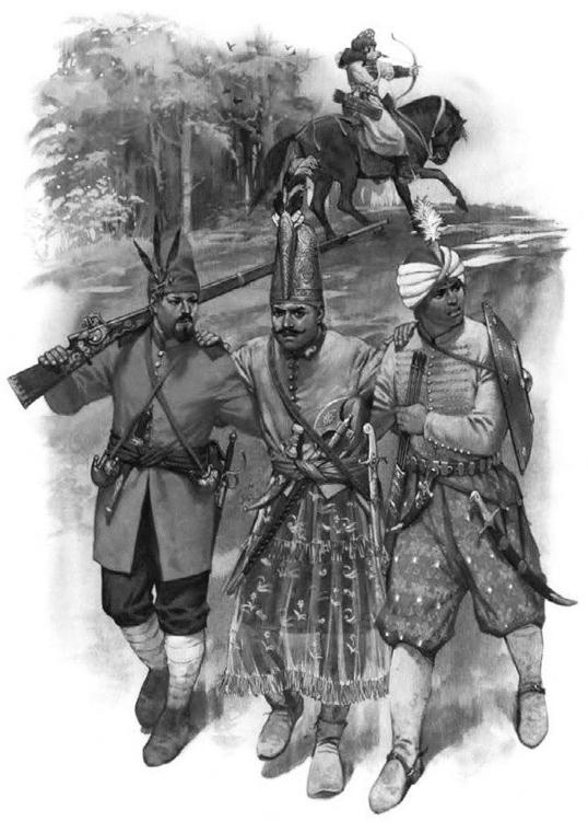 ◎ 从左到右分别是16-17世纪的黎凡特、阿扎布和塞克班士兵。 | ◎ 阿拉伯辅军士兵(右一) |
