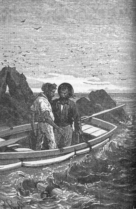“纳布,你这么说是毫无根据的,”潘克洛夫说,“当时你没有看到。我可是看得很清楚,就在双桅船沉没之前的瞬间,它被一个大浪抛了起来,接着它就往左边倒了下去。要是触礁,它会像那些正常的船一样,安静地沉到海底去。”