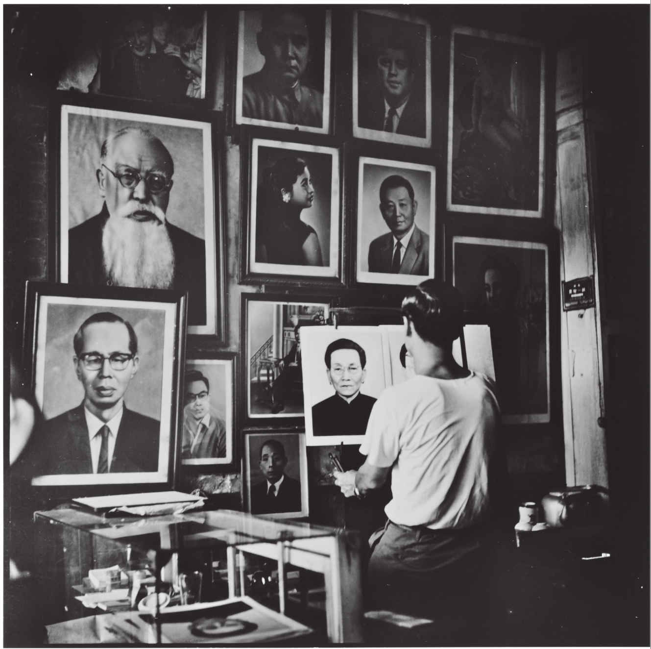 这行业多半是街角小摊位,这么大的店铺还真少见。画师功夫不错,对自己的杰作也颇为得意。墙上挂满的画框里除了孙中山、肯尼迪,还有那年代堪称新潮大胆的裸女图,每一帧都反映着时代背景。