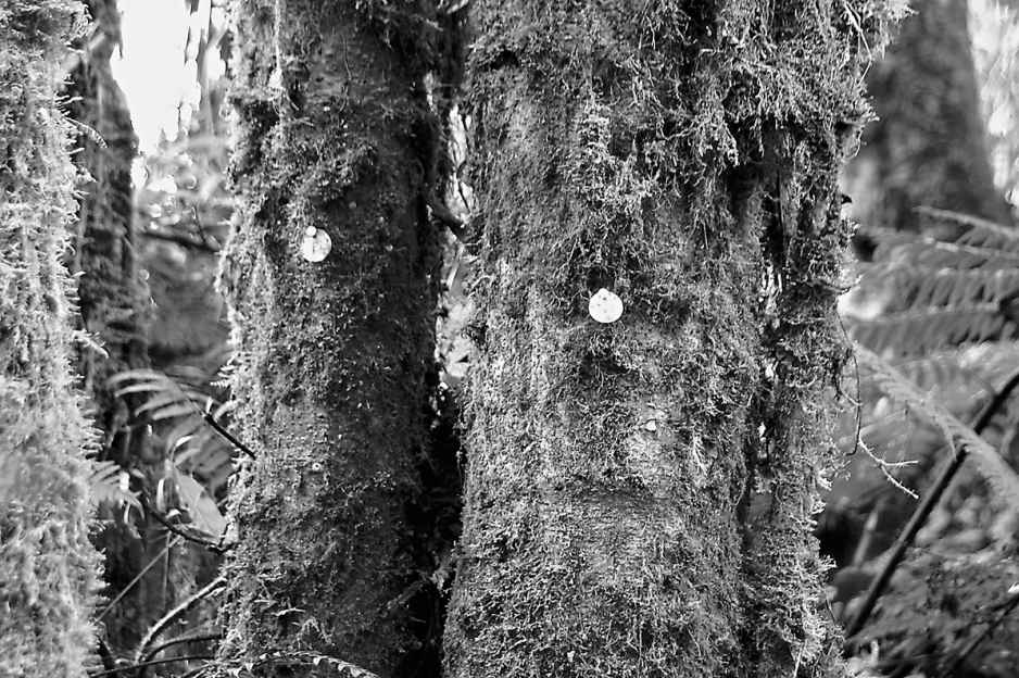 西尔曼的17个树木研究区块,每个都有近2平方公里的面积。它们沿着山脊排布的样式有点像是外衣上的一排纽扣。这些区块从山脊的顶部一直延伸到亚马孙盆地中,几乎到达了海平面的高度。西尔曼或他的学生已经把这些区块中树干直径超过10厘米的每一棵树都做了标记,并对这些树进行了测量,鉴定物种,予以编号。4号区块内有777棵树直径超过10厘米,从属于60个不同的物种。西尔曼和他的学生们正准备重新标记所有这些区块,预期要花费几个月的时间。所有已经标记过的树木要重新进行测量,而上次标记之后死亡或新生的树木则要去除或添加进来。他们之间有过像犹太法典式的长久讨论,部分用英语,部分用西班牙语,讨论的内容是关于这次重新标记到底要怎么来做。在我能跟得上的一点点讨论中,有一些是关于不对称性的。一棵树干的截面并不是完美的圆形,所以如果你测量时持握测径器的角度不同,所得到的直径结果也不同。最后,大家决定使用测径器时,它的固定卡钳要放在树干上用红漆喷好的一个点上。